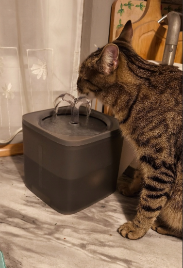 3-litrowa pojemność wystarcza nawet na 5 dni, a stały ruch wody zachęca zwierzę do picia, zapobiegając odwodnieniu.